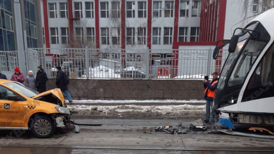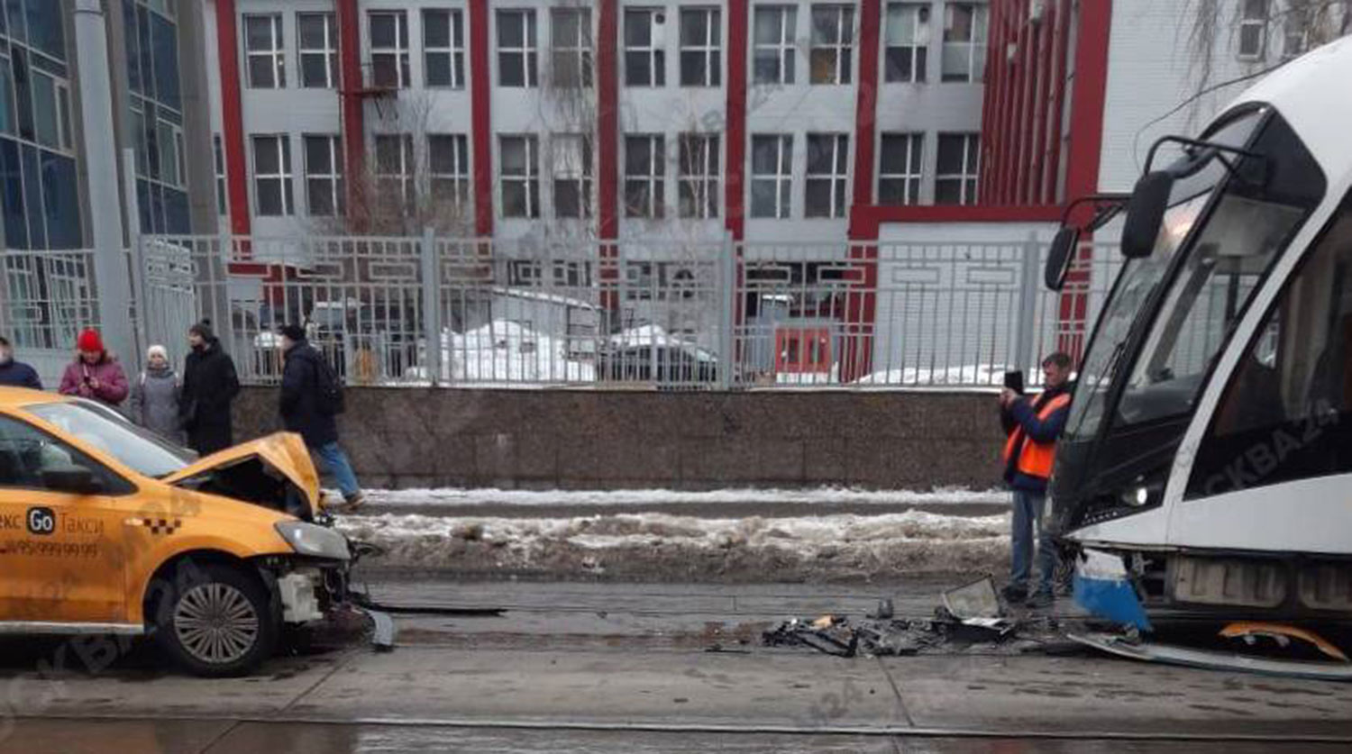Такси влетело в трамвай на Дубининской улице в центре Москвы. Об этом в своем Telegram-канале сообщает столичный департамент транспорта.