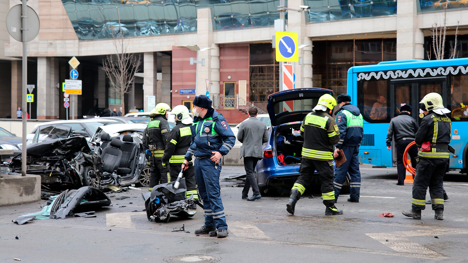 Инцидент произошел на внешней стороне Садового кольца, автомобили столкнулись при выезде из тоннеля в сторону Смоленской площади.