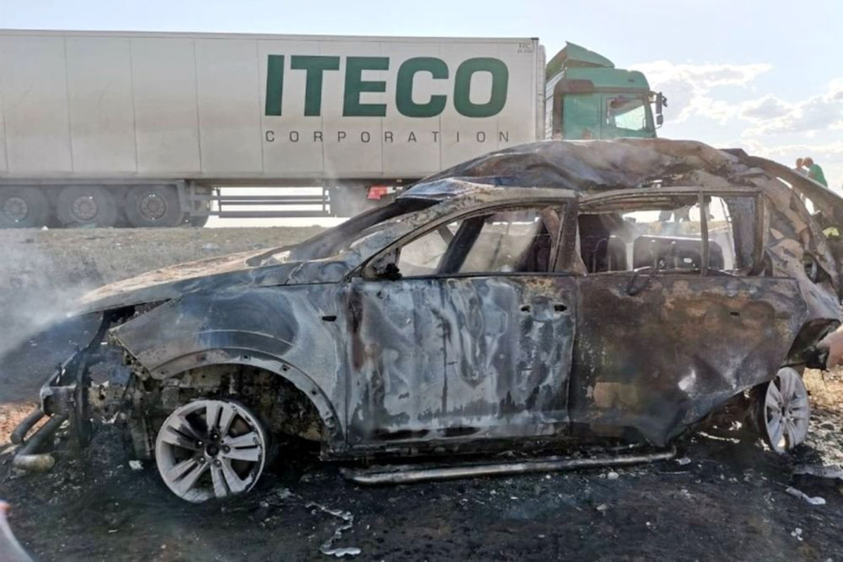 Легковая машина выехала на встречную полосу, столкнулась с грузовиком, из-за чего ее отбросило в кювет. Автомобиль загорелся на месте, четыре человека, находившиеся внутри, в том числе ребенок, погибли. В настоящий момент правоохранители выясняют их личности.