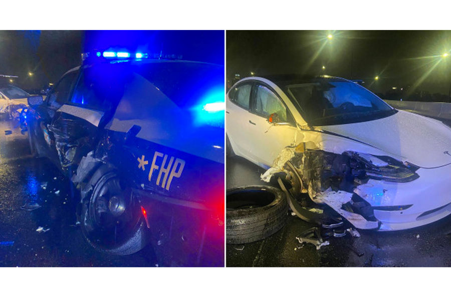 Авария произошла недалеко от города Орландо во Флориде. В полиции заявили, что машина марки Tesla Model 3 разбила их автомобиль Dodge Charger и стоящий рядом Mercedes GLK 350.