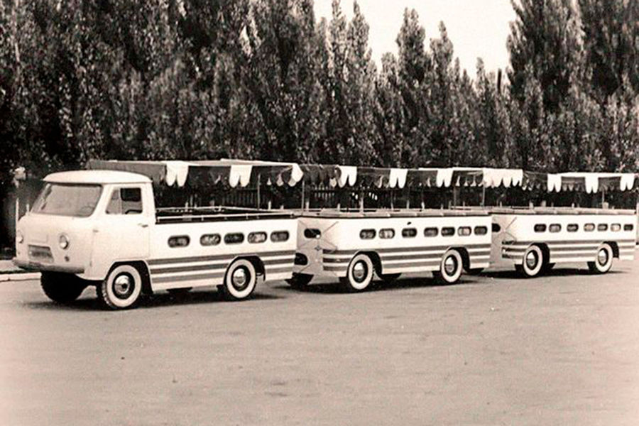 Тягачи на базе УАЗ-452Д с одним или двумя прицепными вагончиками с разноцветным мягким верхом курсировали в крупных марках СССР. Сборка таких автомобилей велась на «Краснодарском механическом заводе нестандартного оборудования» в 1972 году. На УАЗе посоветовали обратить внимание на маленькие боковые окошки, которые были не сквозными, а предназначались для размещения рекламы, поэтому имели подсветку.
