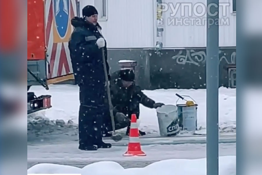 В соцсетях появилось видео с сотрудниками дорожных служб, которые размечали на асфальте пешеходный переход. В нем видно, что во время работ на дороге находится слой снега, также идут осадки. Ролик снят на одной из улиц в Иваново, сообщают «Ивановские новости».