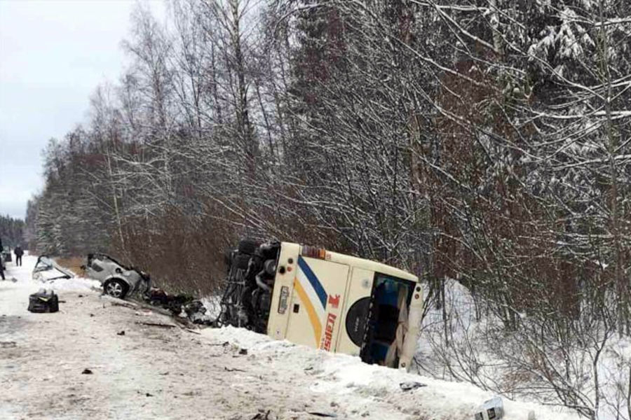 Экскурсионный автобус, в котором находились 40 граждан Российской Федерации, столкнулся с автомобилем в Витебской области днем 3 января. В результате происшествия автобус опрокинулся. Водитель легкового автомобиля погиб на месте. Пассажиры и водитель автобуса госпитализированы с повреждениями различной степени тяжести. Среди пострадавших четверо детей. Уточняется, что всего в автобусе находились 42 человека, среди них 40 россиян, которые ехали на экскурсию.