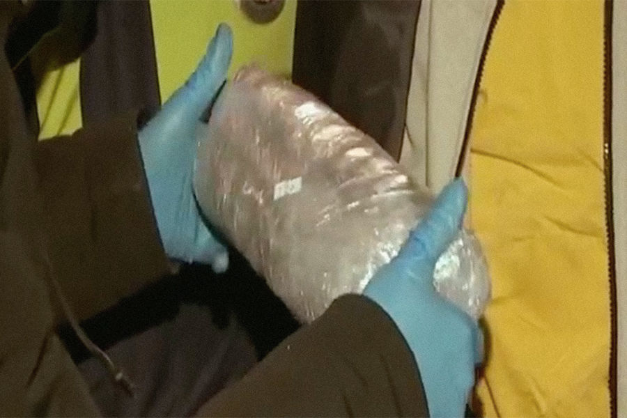 Следственно-оперативная группа обнаружила и изъяла у пассажира полиэтиленовый пакет, внутри которого находилось 220 свертков с неизвестным веществом. Позже было установлено, что в свертках находился мефедрон.