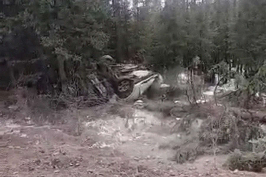 Страшная находка была сделана во время проведения ремонтных работ на автодороге «Вилюй». Перевернутый автомобиль ВАЗ находился в лесном массиве под упавшим деревом. На место происшествия были вызваны сотрудники полиции.