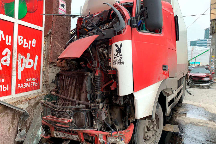 В Новосибирске большегрузный автомобиль Volvo врезался в стену жилого дома, сообщает «Сибкрай».