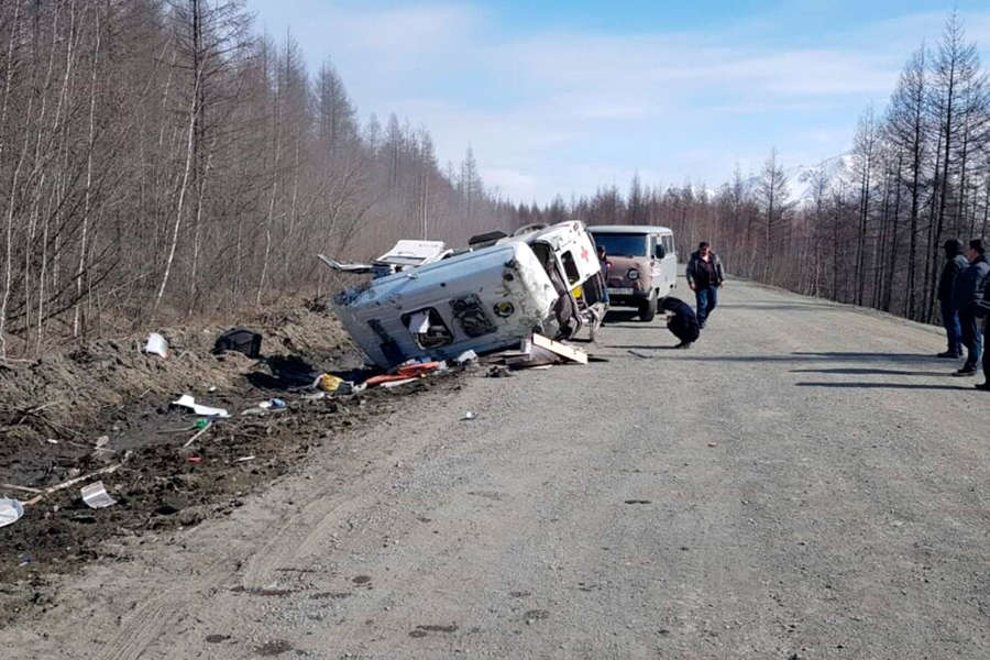 «Забрав больного, которому медики на месте оказали первую неотложную помощь, реанимобиль отправился в обратный путь. По пути следования на 954-м км автодороги «Колыма» около 11:00 водитель скорой, по предварительной версии, не справился с управлением и совершил опрокидывание. Автомашина несколько раз перевернулась», — говорится в сообщении ведомства.