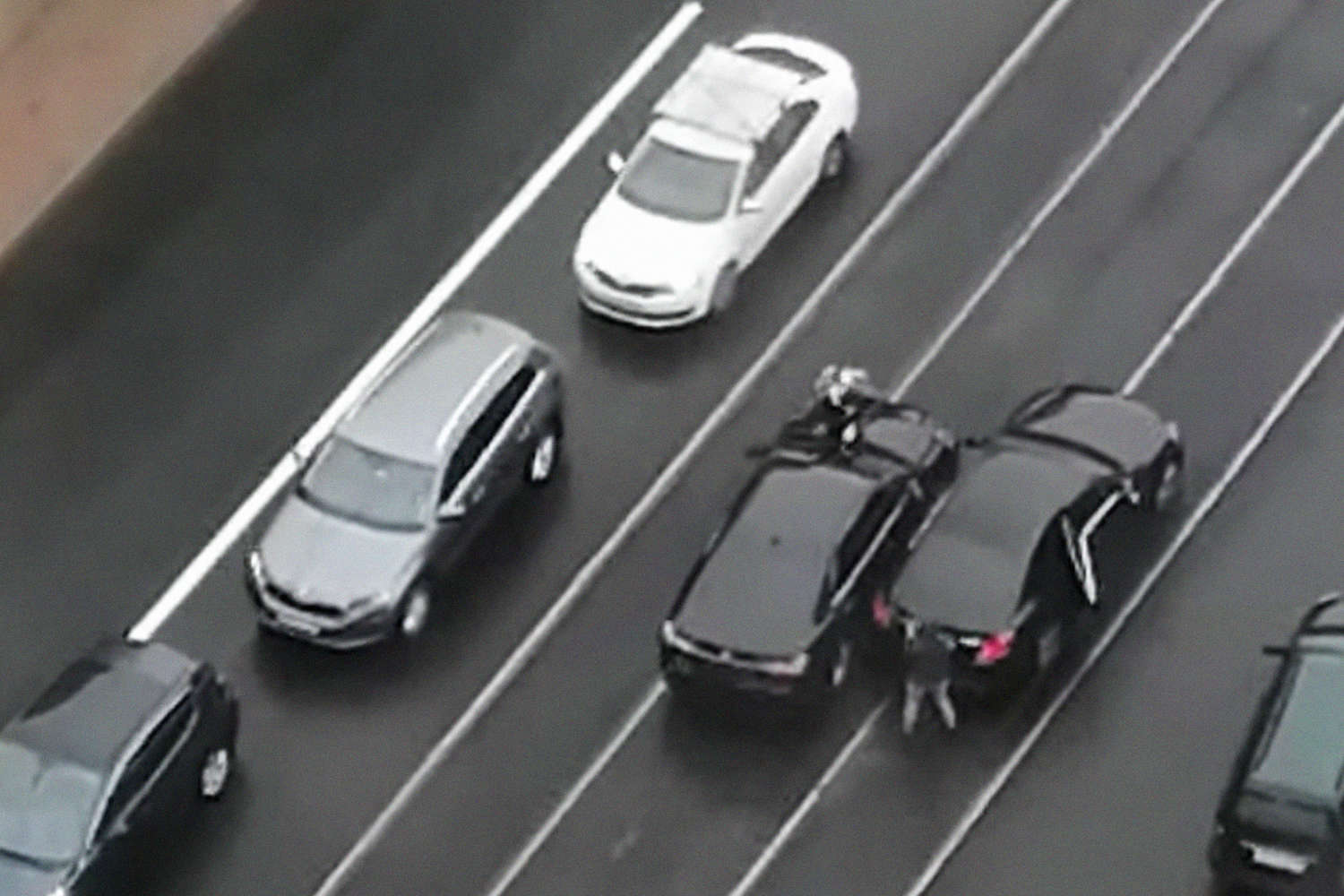 Автомобиль с человеком на капоте попал в ДТП в Санкт-Петербурге. Видео опубликовано в паблике «Вконтакте» «ЧП и ДТП Санкт-Петербург».