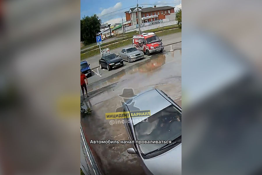 В Барнауле под припаркованным автомобилем образовалась огромная яма из-за прорыва трубы. Видеозапись инцидента появилась в сообществе «Инцидент Барнаул» в VK.