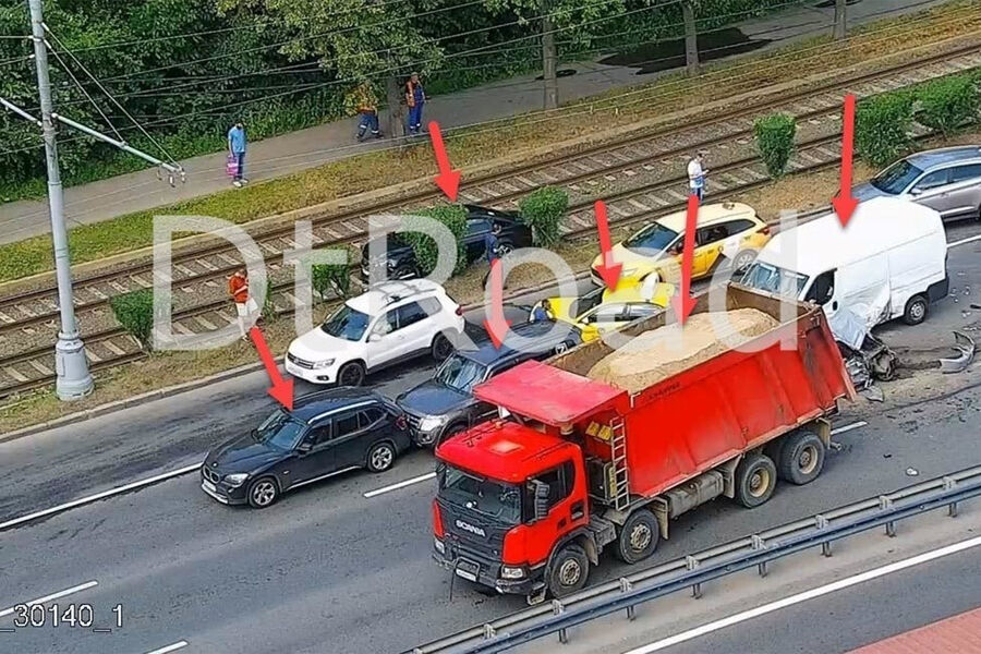 Инцидент произошел в районе пересечения шоссе Энтузиастов с Электродным проездом. Среди участников столкновения — большегрузный самосвал Scania, грузовой фургон, автомобиль такси и три легковых машины. Один из столкнувшихся автомобилей после ДТП вылетел на трамвайные пути, что привело к остановке движения по маршрутам 36, 37 и 43. Для проезда в сторону центра осталась свободной одна полоса из четырех. К 15 часам движение трамваев было восстановлено.