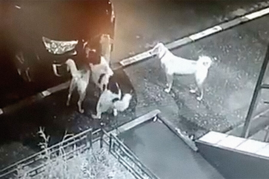 Инцидент произошел в микрорайоне ГПЗ на улице Антонова. На кадрах видно, как три бродячие собаки подходят к автомобилю и зубами тянут на себя номер. Вскоре табличка повисает на одном креплении. Покрутившись у капота еще несколько минут, собаки убежали.