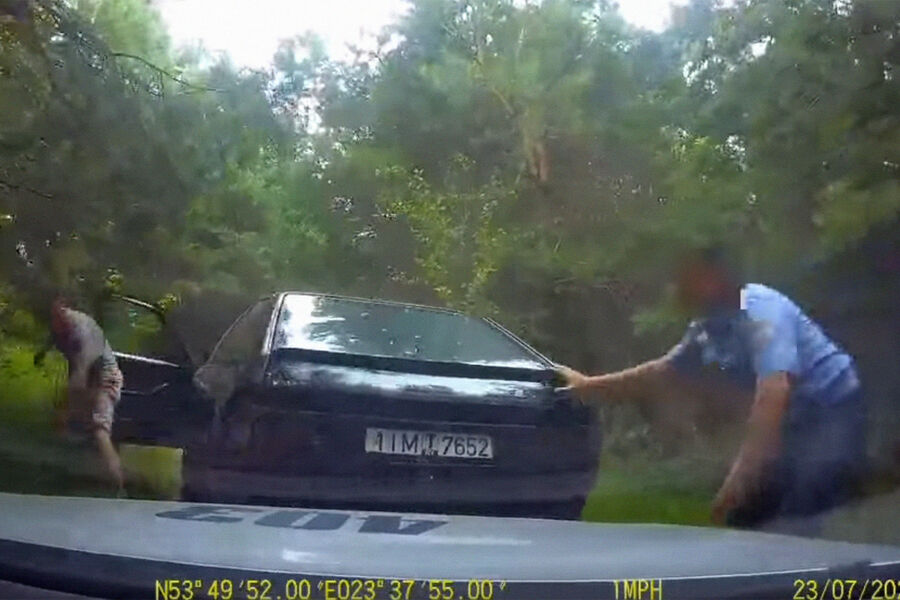 В Гродненском районе Белоруссии водитель направил свой автомобиль на инспекторов ГАИ, а сам выскочил из-за руля и бросился бежать, сообщает издание Onliner.