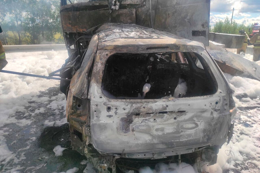 В Тюменской области грузовик, перевозивший бетонные блоки, выехал на встречную полосу и столкнулся с легковой машиной, в результате произошел пожар и погибли два человека. Об этом сообщает пресс-служба областного ГИБДД.