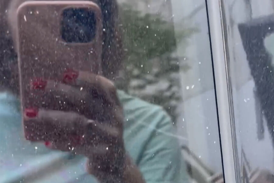 Судя по видео, снятое девушкой, мелкие частицы пепла полностью обсыпали один из автомобилей на парковке. При этом на боковых стеклах его видно лучше всего.