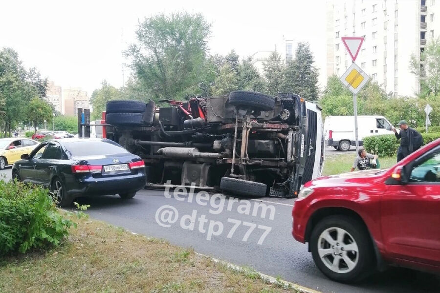 После того, как автомобиль опрокинулся, из кузова на дорогу высыпалась часть мусора. На место дорожно-транспортного происшествия прибыли два полицейских автомобиля. Движение в районе аварии пришлось частично перекрыть. Сотрудники Госавтоинспекции устанавливают все обстоятельства произошедшего ДТП.
