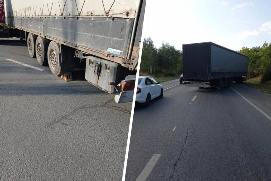 Мужчину с многочисленными травмами отправили в ближайшую больницу. Судя по фото, фура перегородила одну из полос шоссе.