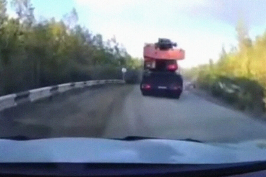 После этого автокран проехал вниз по дороге еще несколько десятков метров и упал в кювет. Никто из водителей или пассажиров не пострадал.