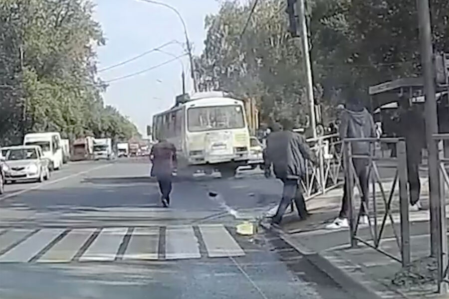Судя по видео, после того, как мужчина разбил заднее стекло автобуса, он вернулся на тротуар и вместе приятелем ушел в противоположном направлении. Автобус, проехав несколько десятков метров, остановился на обочине.