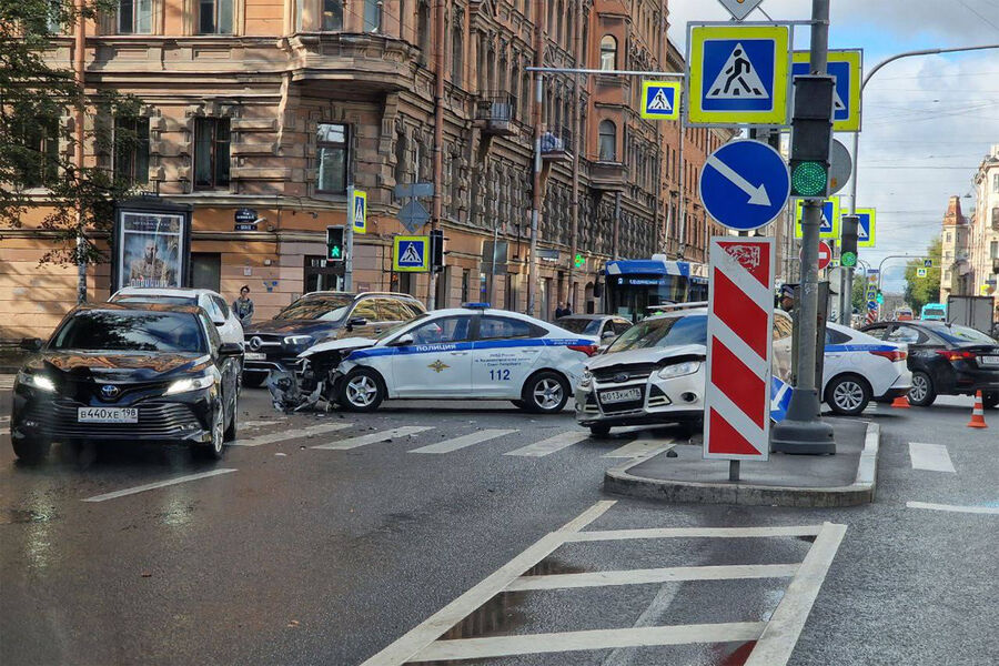 По данным портала, в доме на 7-й линии Васильевского острова произошел пожар. Полицейский автомобиль выехал на место для обеспечения безопасности при подъезде машин МЧС. Машина двигалась с включенными спецсигналами. При повороте на запрещающий сигнал светофора произошло столкновение полицейского автомобиля с Ford Focus.
