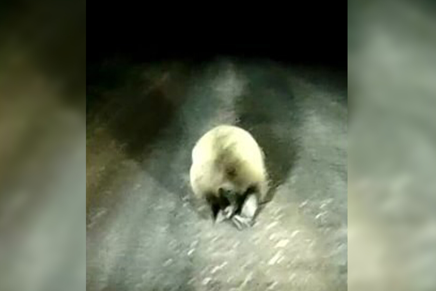 Спустя несколько минут погони медведь сместился на обочину и убежал в лес.