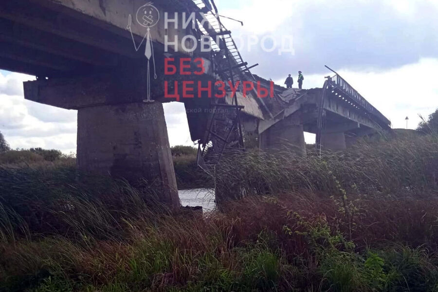 Двухполосный автомобильный мост через реку Ургу частично обрушился в Нижегородской области. Фото поврежденного сооружения опубликовал Telegram-канал «Нижний Новгород. Без Цензуры».