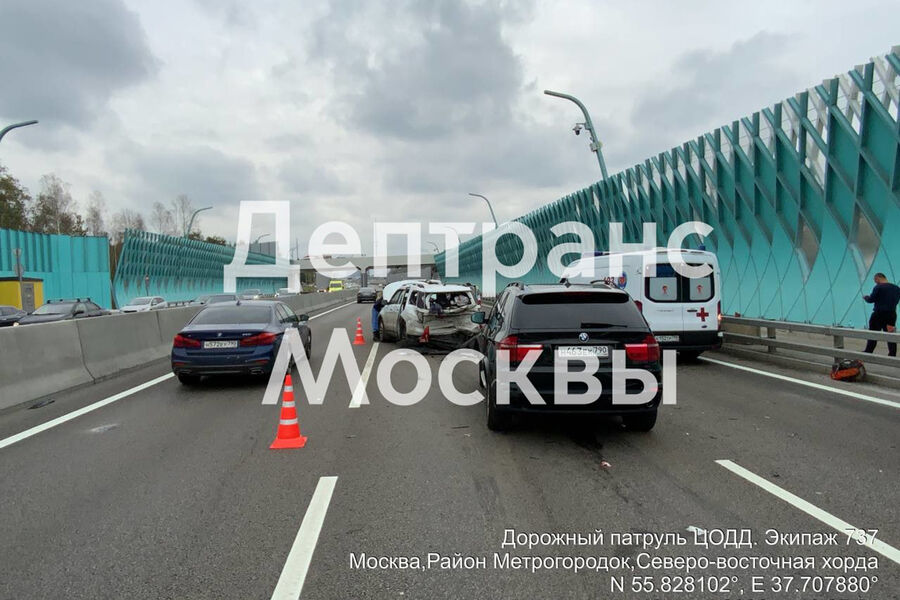 Авария произошла на Северо-Восточной хорде (СВХ) в районе Лосиноостровской улицы. Движение по внешней стороне СВХ затруднено. На месте ДТП работают сотрудники оперативных служб, обстоятельства произошедшего и информация о пострадавших уточняются, говорится в сообщении.