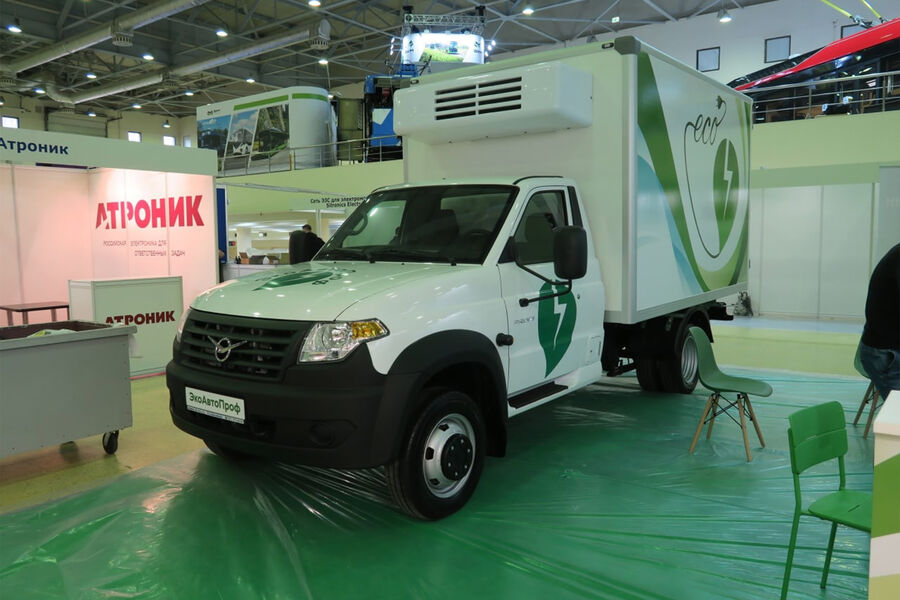 В московском Экспоцентре представили электрический грузовик «ЭкоАвтоПроф», построенный на базе УАЗ «Профи», сообщает портал «Дром».