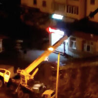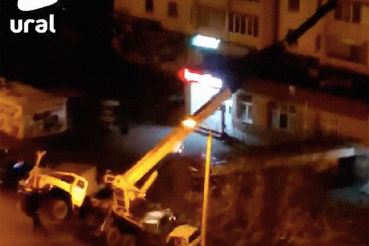 Инцидент произошел на улице Салавата Юлаева. Автокран пытался поднять и переместить ларек длиной 10 метров, однако не смог его поднять и завалился на два автомобиля на стоянке. Из-за того, что торговый павильон перевесил автокран, его передняя часть поднялась вверх.