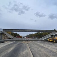 Во Владимирской области грузовик с поднятым кузовом снес строящийся мост
