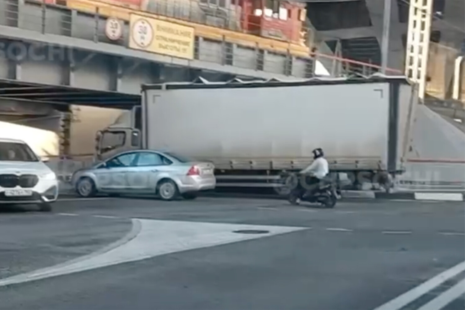 Мост, под которым произошло ДТП, именуется в народе «мостом дураков», поскольку примерно раз в две недели под ним пытаются проехать автомобили, не проходящие по габаритам, — несмотря на многочисленные предупреждающие знаки, уточняется в сообщении. В Сочи есть еще минимум два подобных сооружения.
