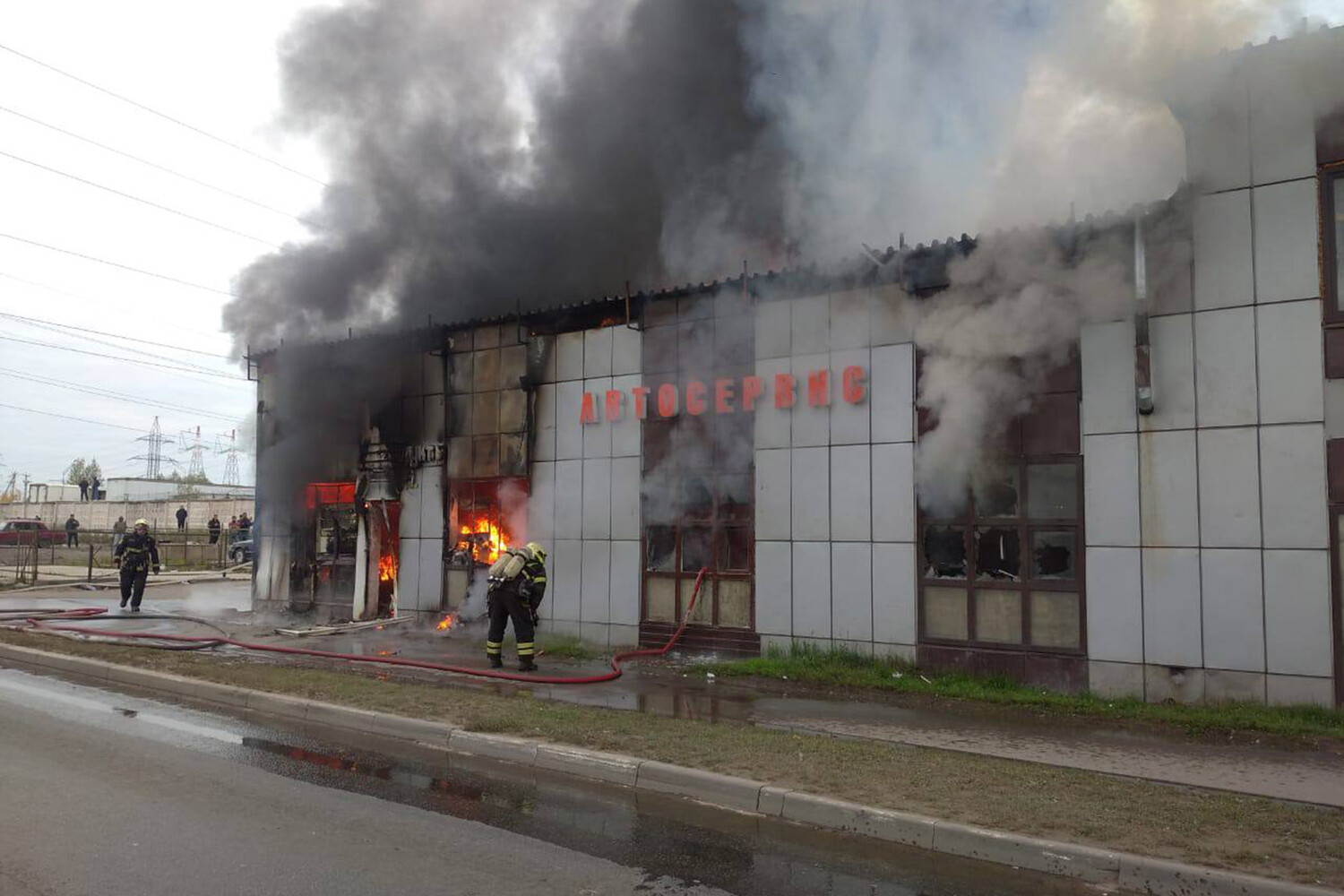 Мужчины были госпитализированы в тяжелом состоянии. Площадь пожара в автосервисе составила 50 кв. метров, огонь также охватил припаркованный рядом бензовоз, уточняет пресс-служба столичного управления МЧС. К 10:30 пожар был ликвидирован.