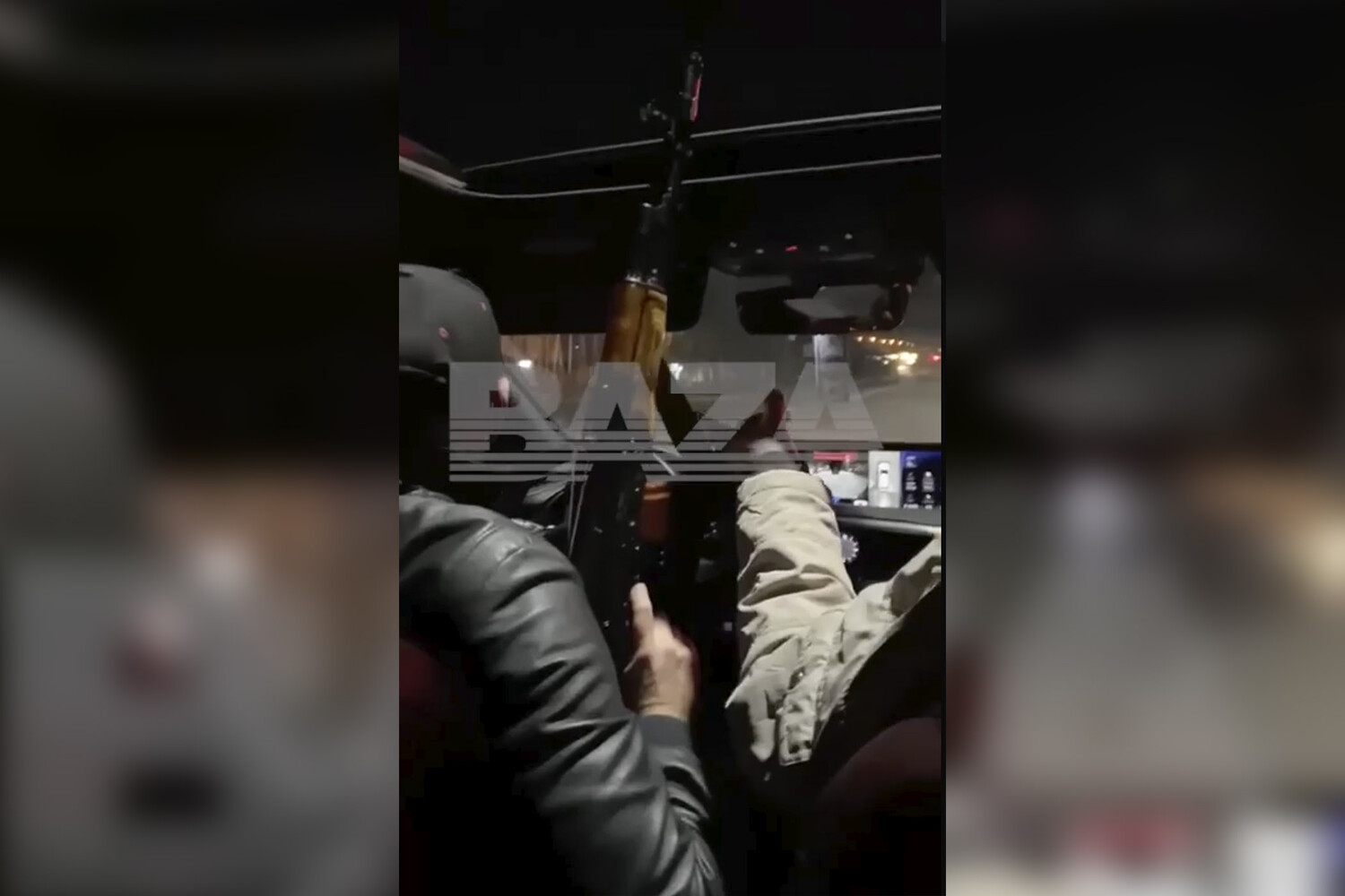 В ролике видно, как сидящий за рулем мужчина одной рукой управляет автомобилем, а во второй держит автомат, направив дуло в люк. Один из пассажиров попросил водителя выстрелить, чтобы проверить, будет ли в машине громко.