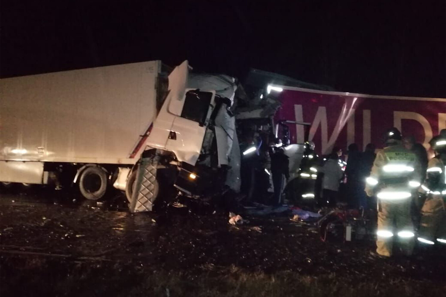 Отмечается, что в результате аварии погибли водитель одной из фур, а также пассажир, ехавший в другом грузовике. Полиция перекрыла участок дороги в районе ДТП. Выясняются причины произошедшего.