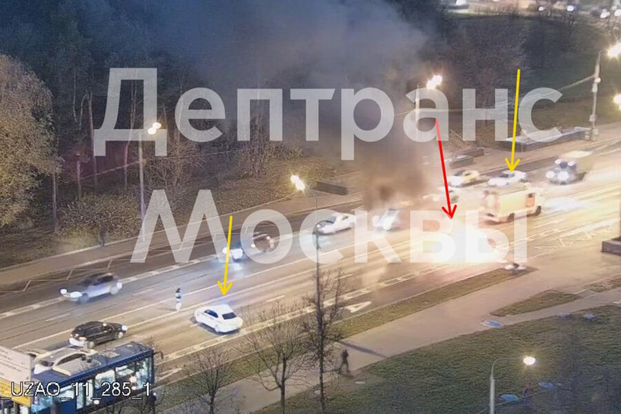 На юго-западе Москвы автомобиль загорелся на проезжей части