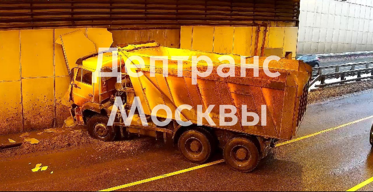 Грузовик врезался в стену в Лефортовском тоннеле в Москве. Об этом сообщает Telegram-канал «Дептранс. Оперативно».