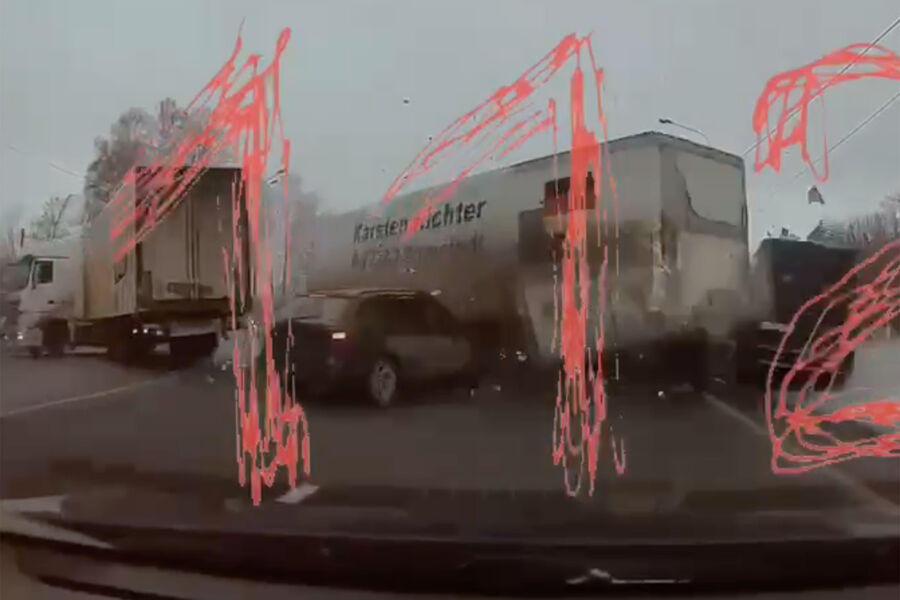 Момент массовой аварии с фурами в Подмосковье попал на видео