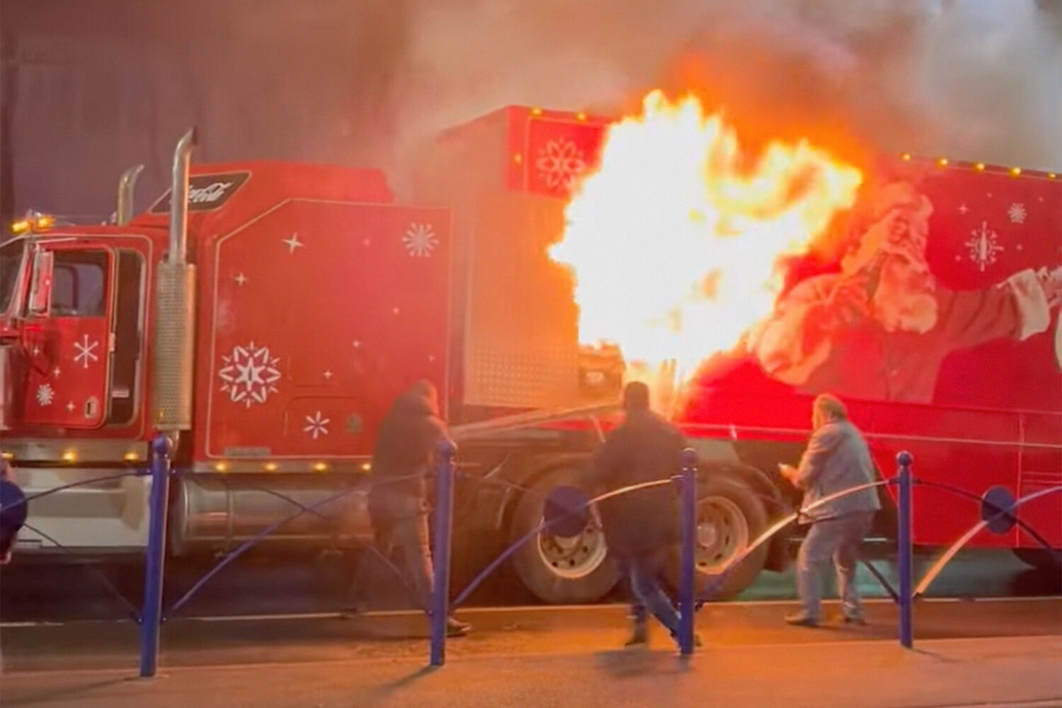 Новогодний грузовик Coca-Cola загорелся на ходу в Бухаресте