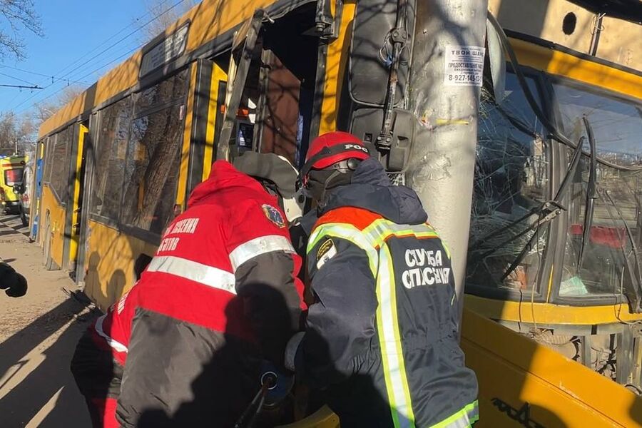Поясняется, что на улице Большая Горная водитель автобуса №11 протаранил опору освещения.