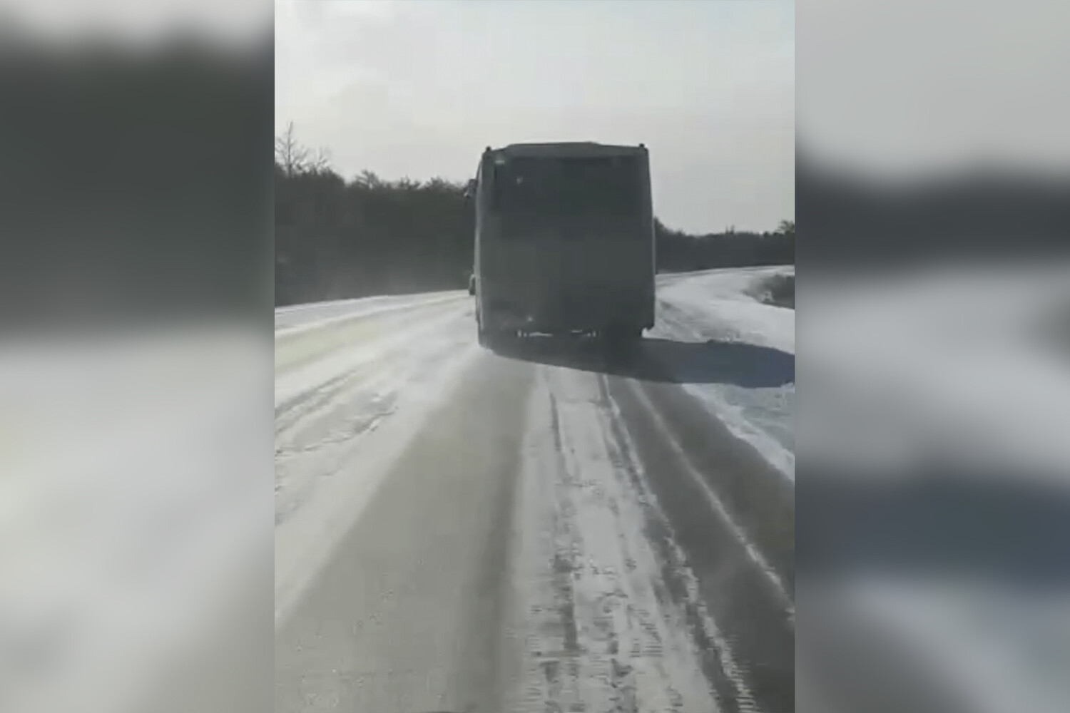 На Сахалине местная жительница пожаловалась на «перекошенный» автобус с людьми, который ехал по трассе на высокой скорости, сообщает сетевое издание «Сахалин и Курилы». Движущийся боком автобус попал на видео.