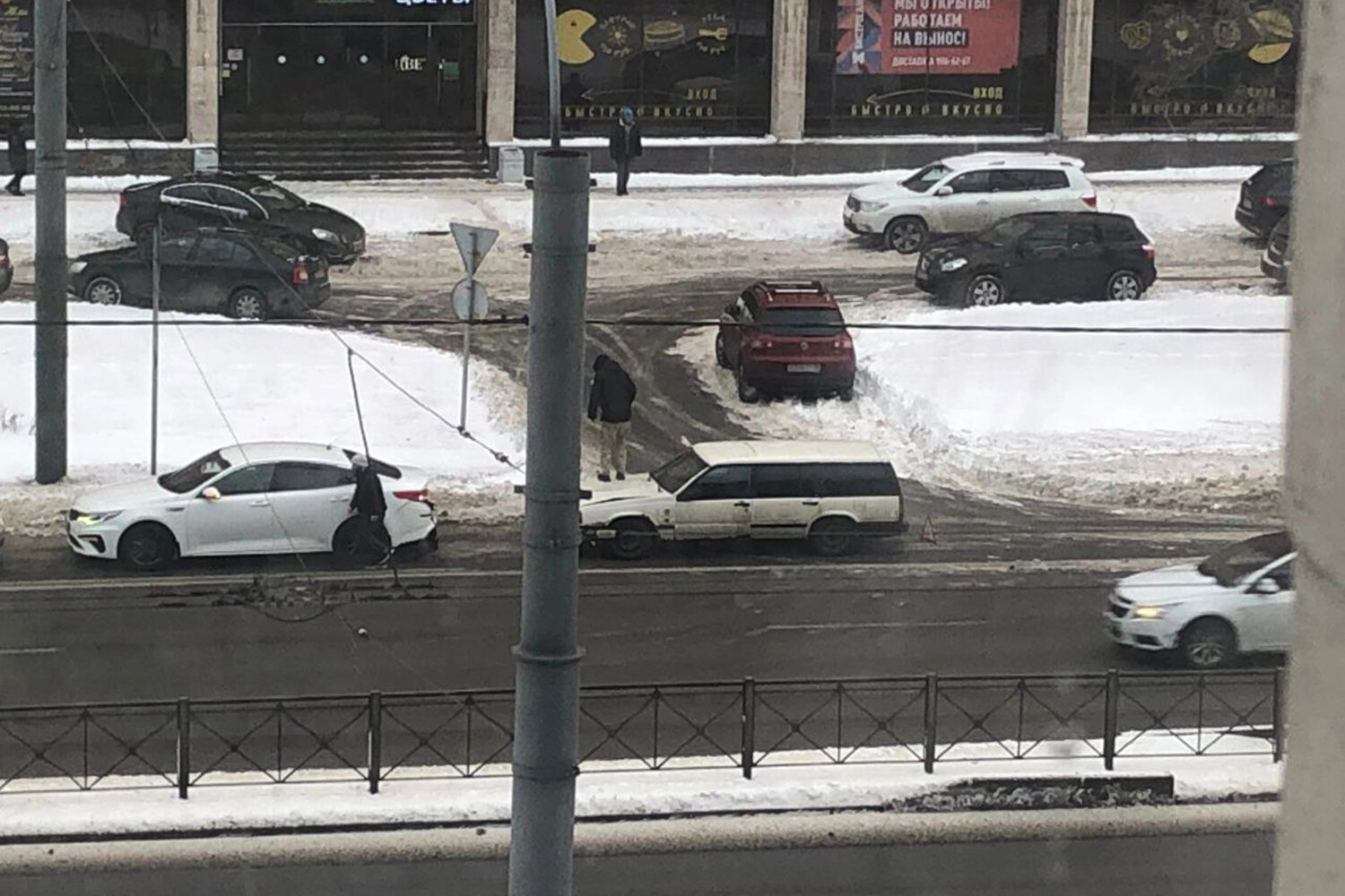 В Санкт-Петербурге попавший в ДТП мужчина на Volvo попрыгал на капоте своей машины, чтобы его выпрямить. Об этом сообщает Telegram-канал «Мегаполис. ДТП и ЧП. Санкт-Петербург. Питер».