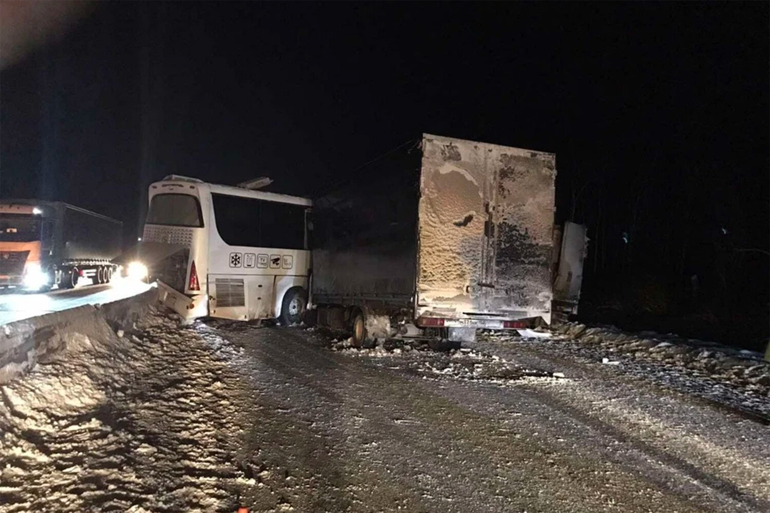 В ведомстве пояснили, что водитель туристического автобуса не выбрал безопасную скорость и столкнулся с грузовиком Mercedes-Benz, двигавшемся в попутном направлении. После этого в них врезалась «Газель».