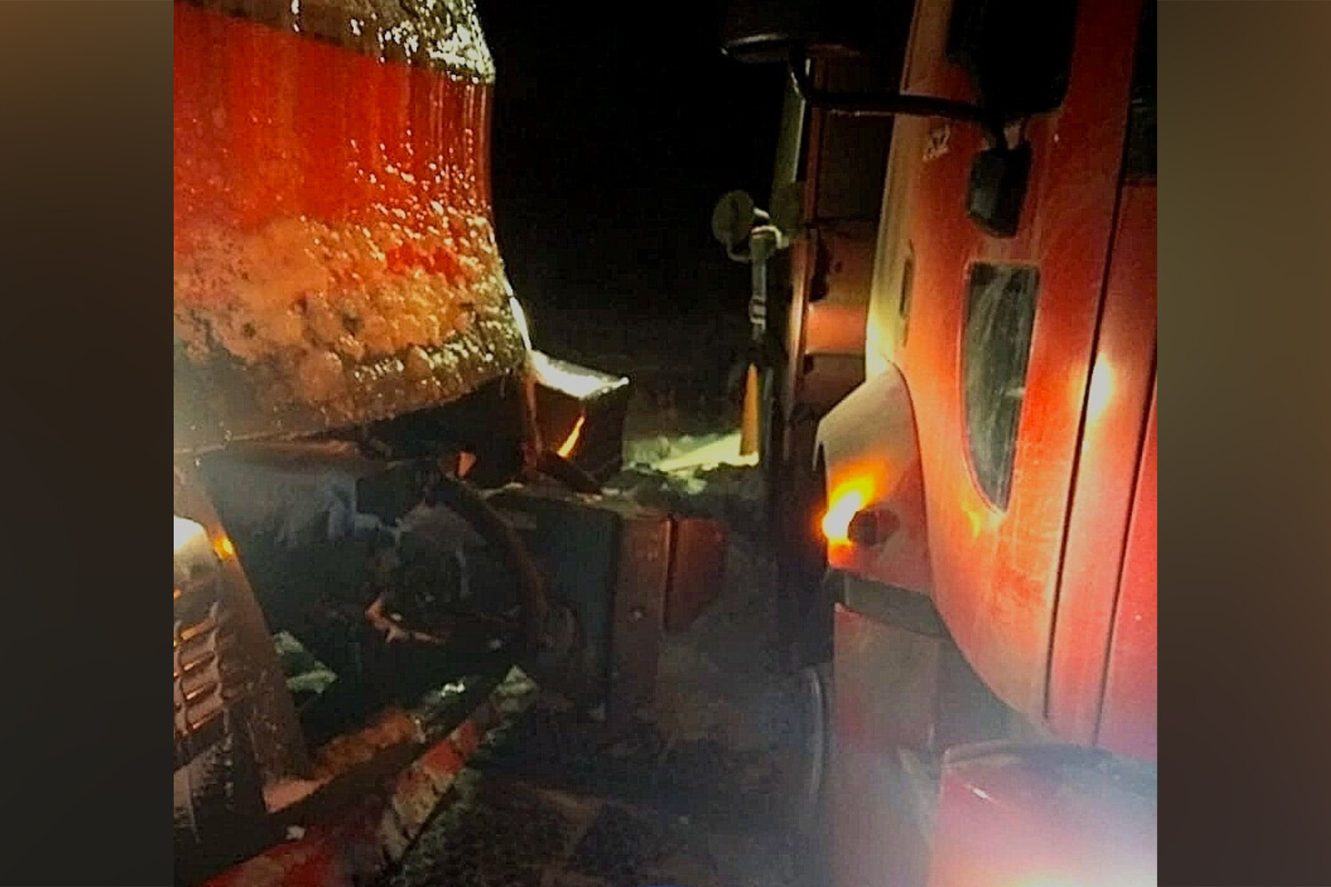 Машинист поезда сумел остановить состав в нескольких сантиметрах от застрявшего на переезде грузового автомобиля. Об этом сообщает Telegram-канал Shot.
