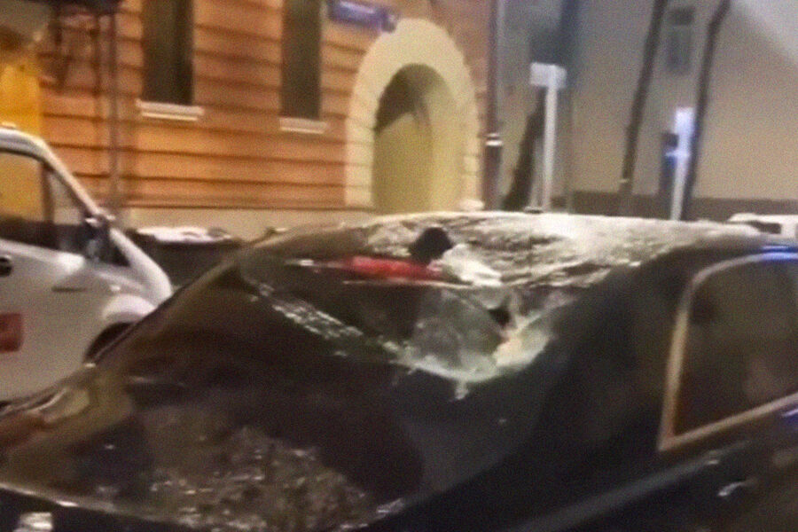 «Стоит красивый Aurus и, по ходу, в него прилетела сосулька. Крыша в хлам, заднее стекло в хлам», — прокомментировал последствия происшествия автор видео.