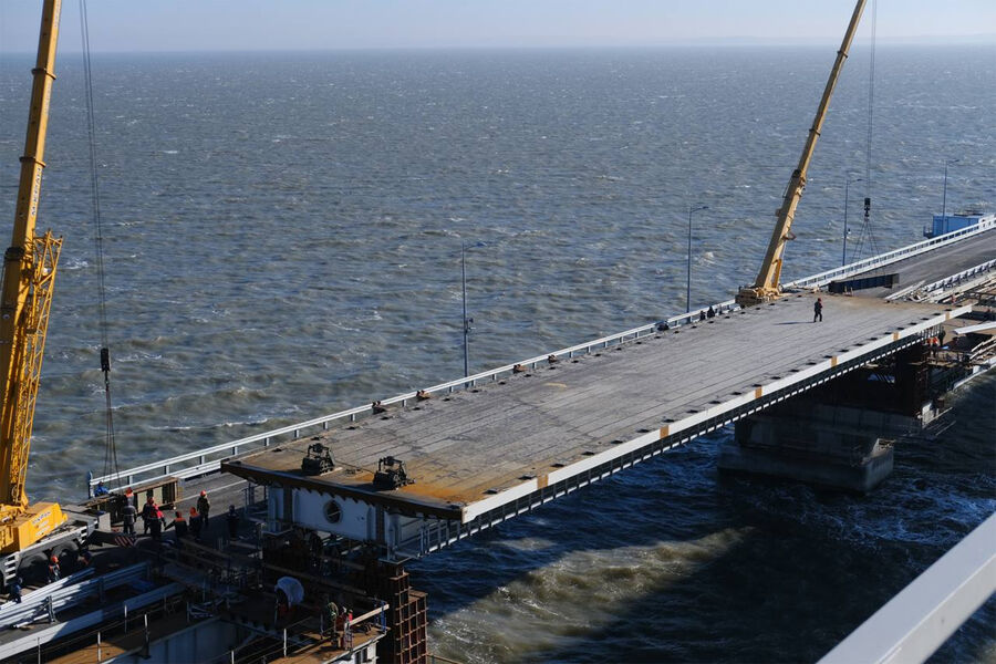 Вице-премьер РФ Марат Хуснуллин написал в своем Telegram-канале о завершении установки первого пролета левой автодорожной части Крымского моста.