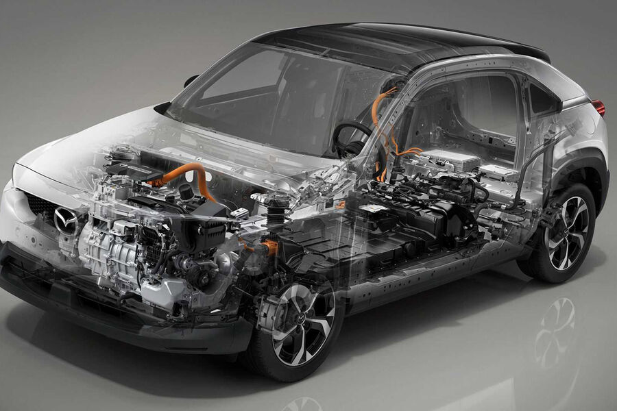 Если ранее РПД использовался для привода колес, то в новом Mazda MX-30 он вращает генератор, который служит для подзарядки тяговой батареи гибридной машины. Также ее можно заряжать и от электросети.