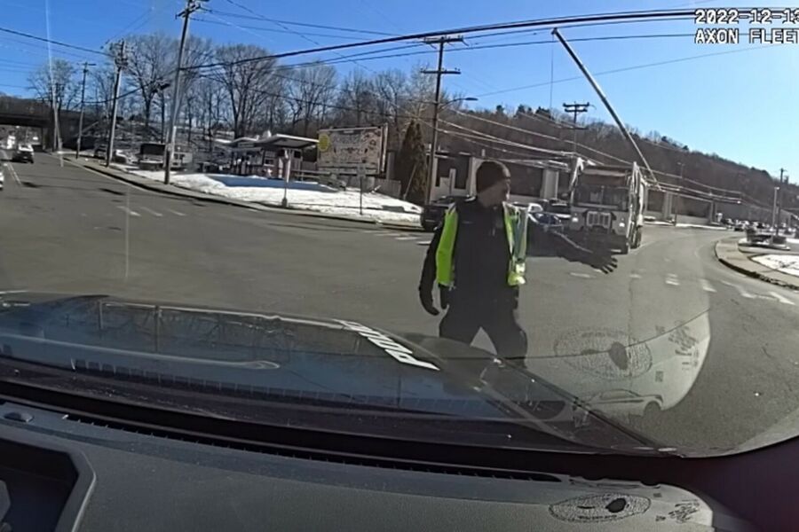 Инцидент произошел в середине декабря в штате Коннектикут. Офицер Джеймс Хинкль регулировал дорожное движение на перекрестке, на котором вышел из строя светофор. В какой-то момент Хинкль увидел приближающийся на высокой скорости автомобиль Toyota RAV4, ударил по нему рукой и потребовал остановиться. Полицейский подошел к водителю-женщине и накричал на нее, обвинив в том, что она едва его не сбила.