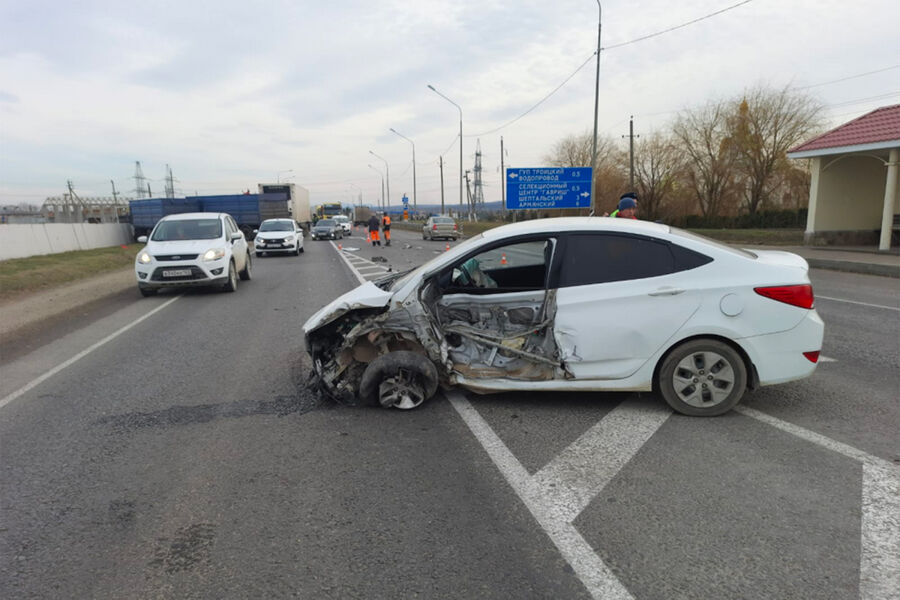 В Краснодарском крае водитель Hyundai Solaris устроил ДТП с тремя грузовиками