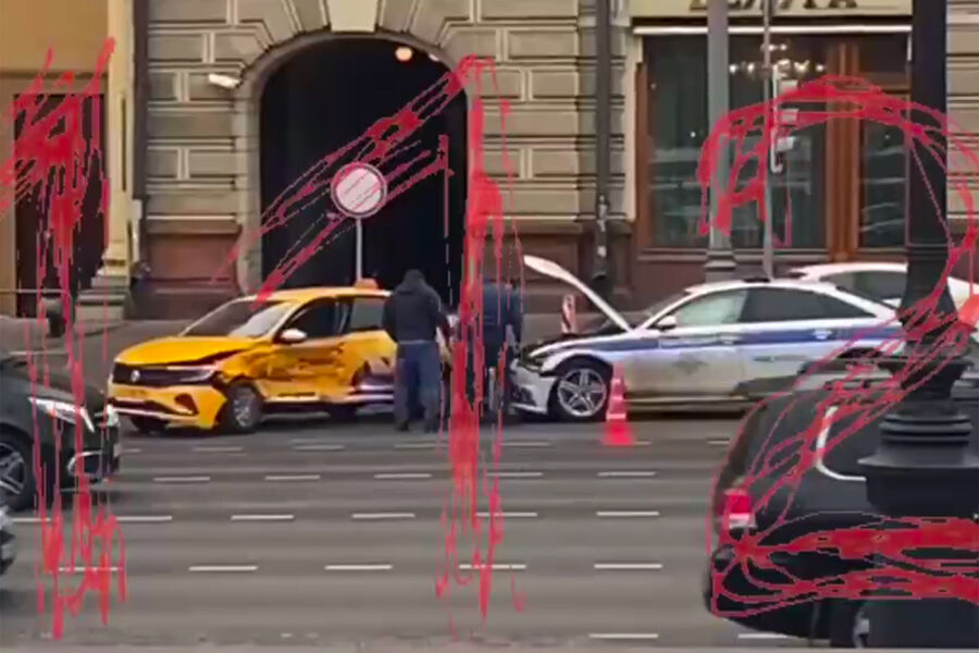 На Моховой улице в центре Москвы произошло ДТП с участием такси и полицейского автомобиля, сообщает Telegram-канал 112.