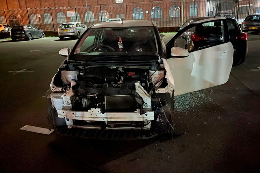 Вернувшись к машине, британка обнаружила, что передняя часть автомобиля полностью разобрана — в частности, воры похитили передний бампер, капот и фары компактного хетчбэка. Также злоумышленники разбили боковое стекло, чтобы иметь возможность открыть капот.