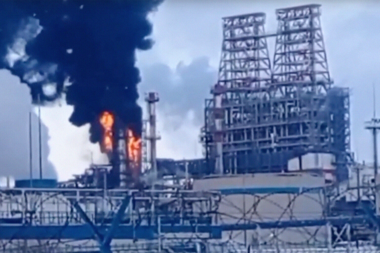 В Нижегородской области возник пожар на нефтеперерабатывающем заводе. Видео происшествия разместил Telegram-канал Shot.
